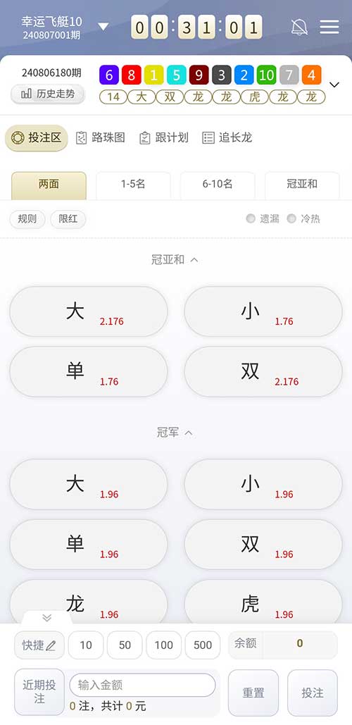 2. 玩法多样:幸运飞艇提供单式投注和复式投注两种玩法,玩家可以根据自己的喜好和预算进行选择。同时,开奖号码范围广泛,涵盖了从1到9的所有数字,让玩家有更多的投注选择。