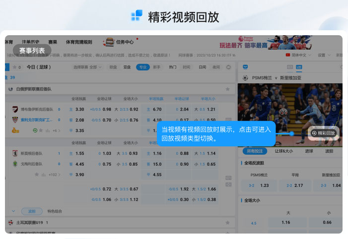 此外,熊猫体育平台还提供了一些特殊的投注方式,如比分投注(精确到比分结果)、半全场投注(判断半场和全场的比赛结果组合)等,进一步丰富了用户的投注选择。